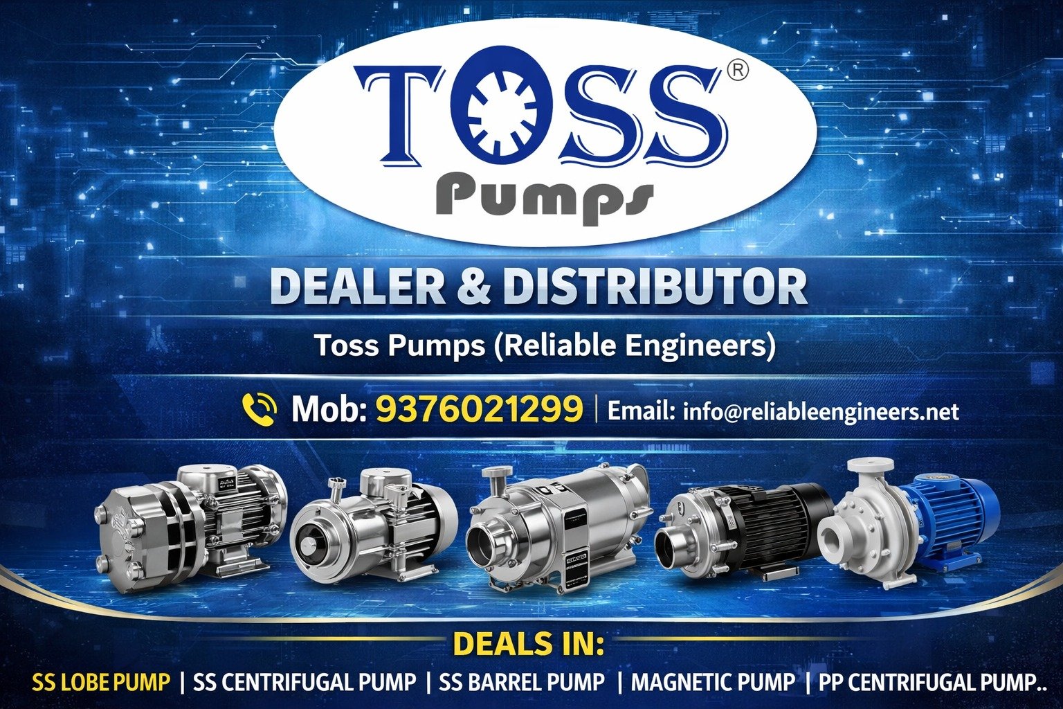 We at Toss Pumps (Reliable Engineers) are expanding our nationwide dealer and distributor network across India. With years of engineering expertise and a strong reputation for quality and performance, Toss Pumps offers reliable pumping solutions trusted by industries nationwide. We invite dealers, distributors, and channel partners from PAN India to join hands with us and grow together.